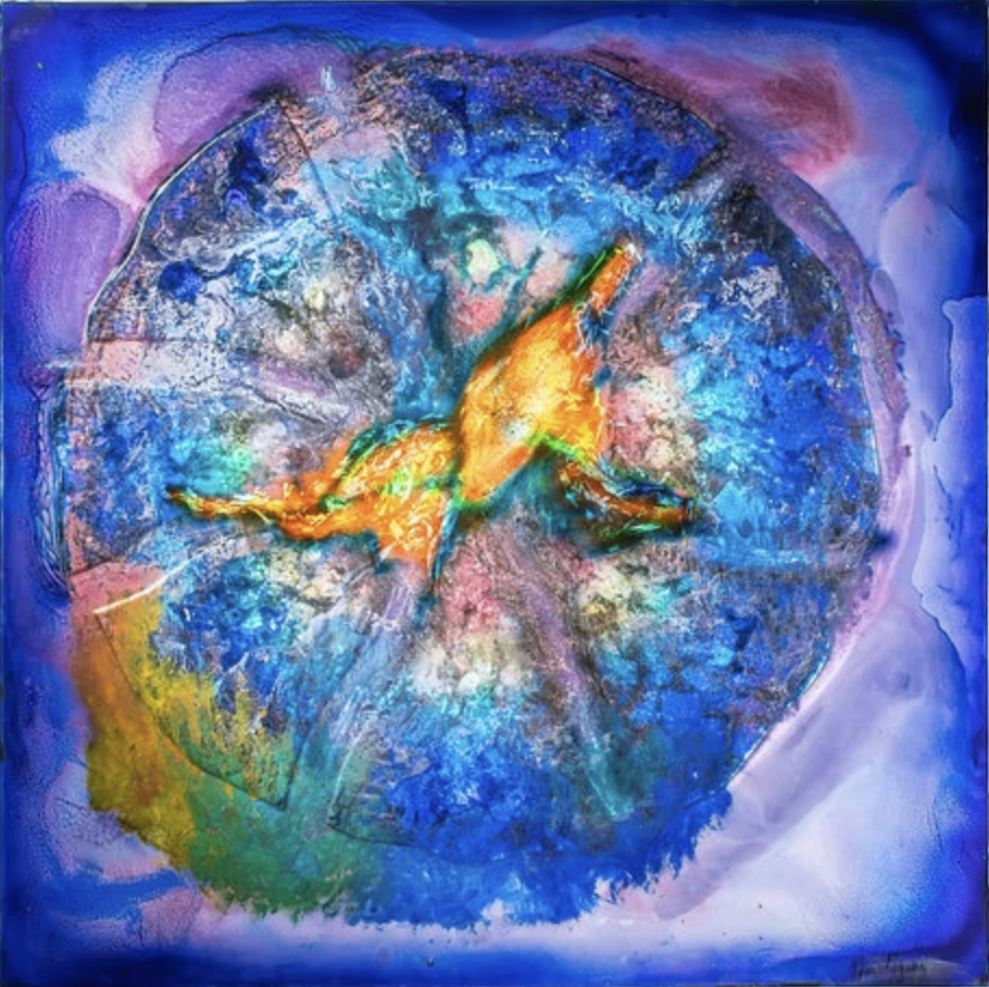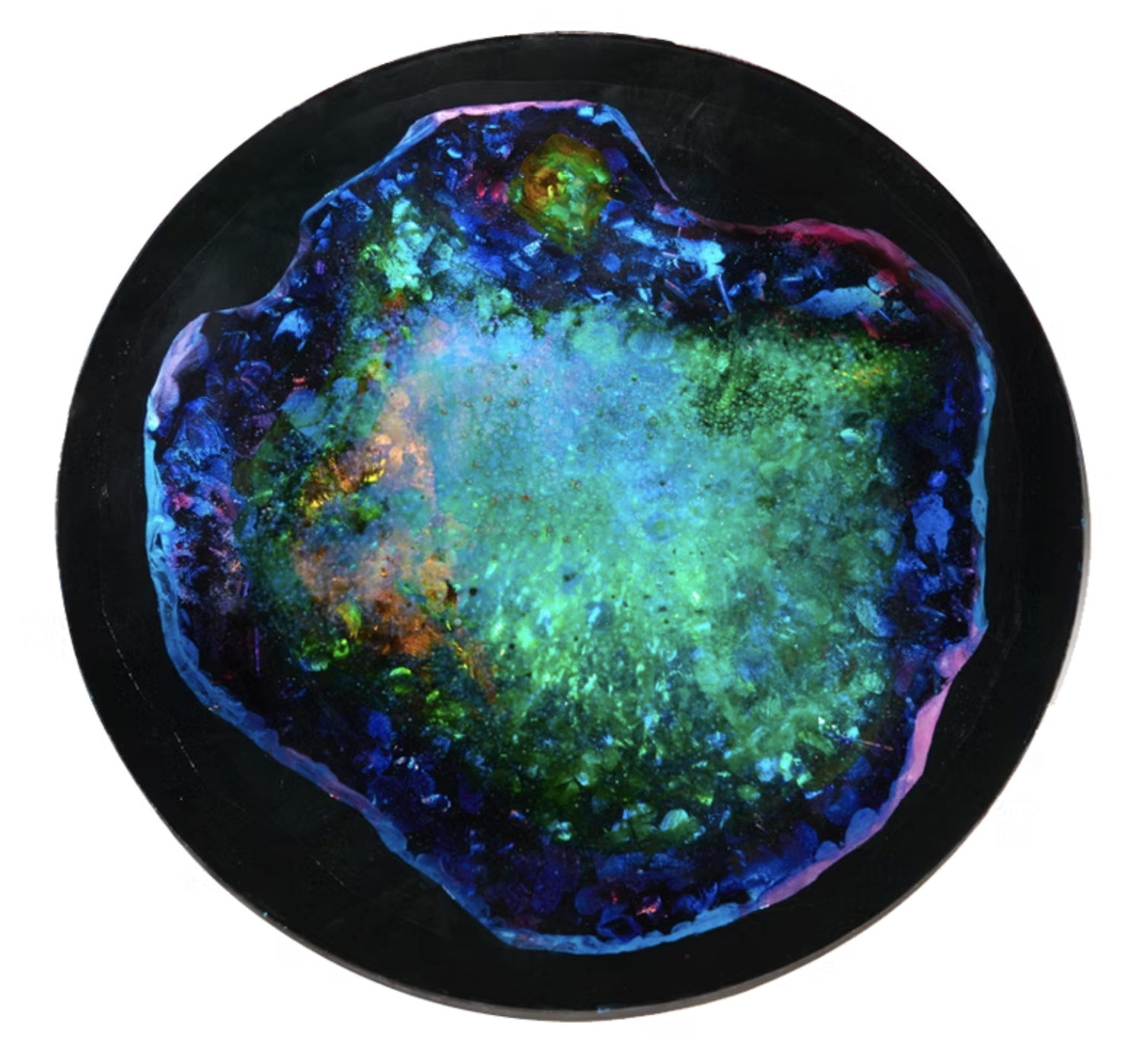 Through over 6 years of R&D, he developed a resin and technique that achieved the effect he was looking for in his cellular art. He then looked to other unique, unusual media, and eventually built his “cave” – a vibration-free zone needed for the delicate process of producing holographs. Tom derived great joy from seeing scientific phenomena come to life in an art form that is unique, vibrant, and plain fun.